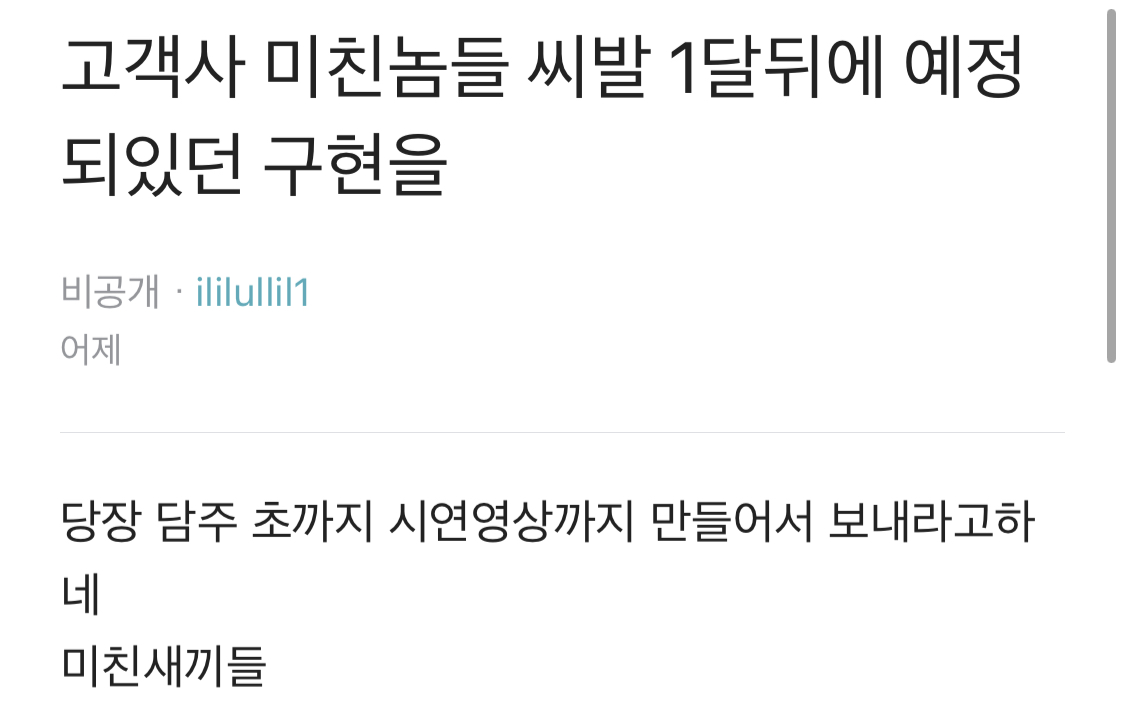 - 납기일에서 1일늦을때마다 지체상금때면서 이런건 왜 추가보상안해줌?