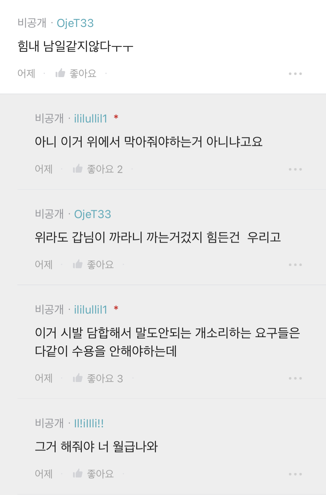 - 위라도 갑님이 까라니 까는거겄지 힘든건 우리고