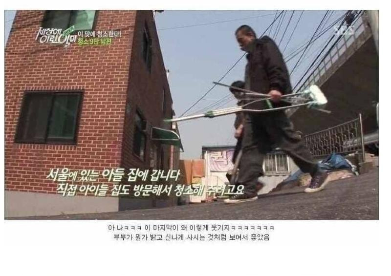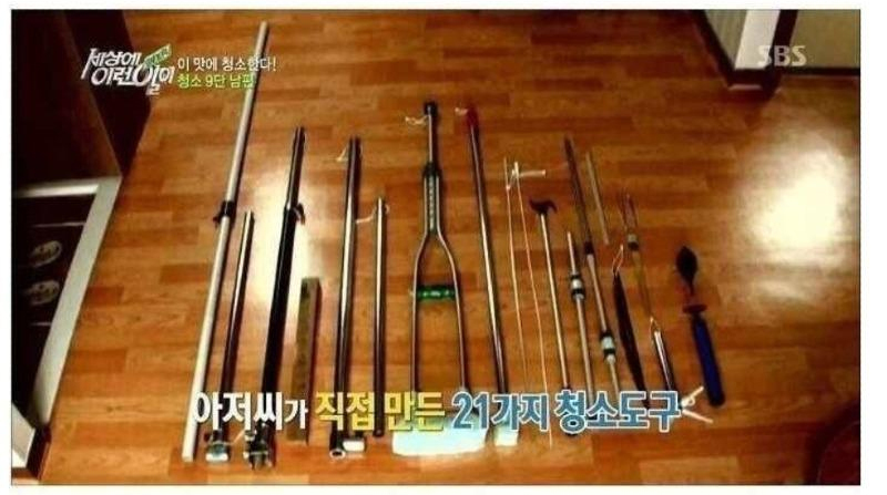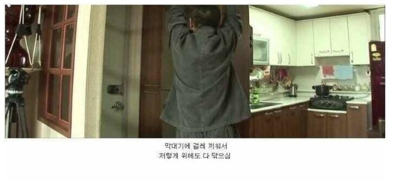 막대기에 걸레 끼워서 저렇게 위에도 다 닦으심