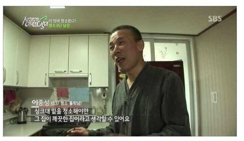 싱크대 밑을 청소헤야만 그 집이 깨끗한 집이에요.