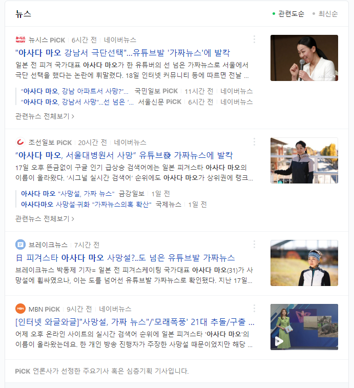 아사다마오가 서울 강남 아파트에서 극단적 선택을 했다는 완전 허위 뉴스..
